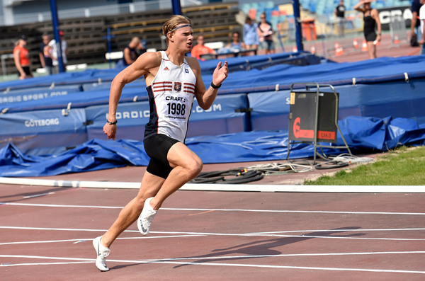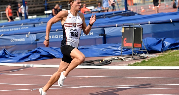 Gabriel Wallmark flyger 7.13m i längdhopp på Ullevi i somras.